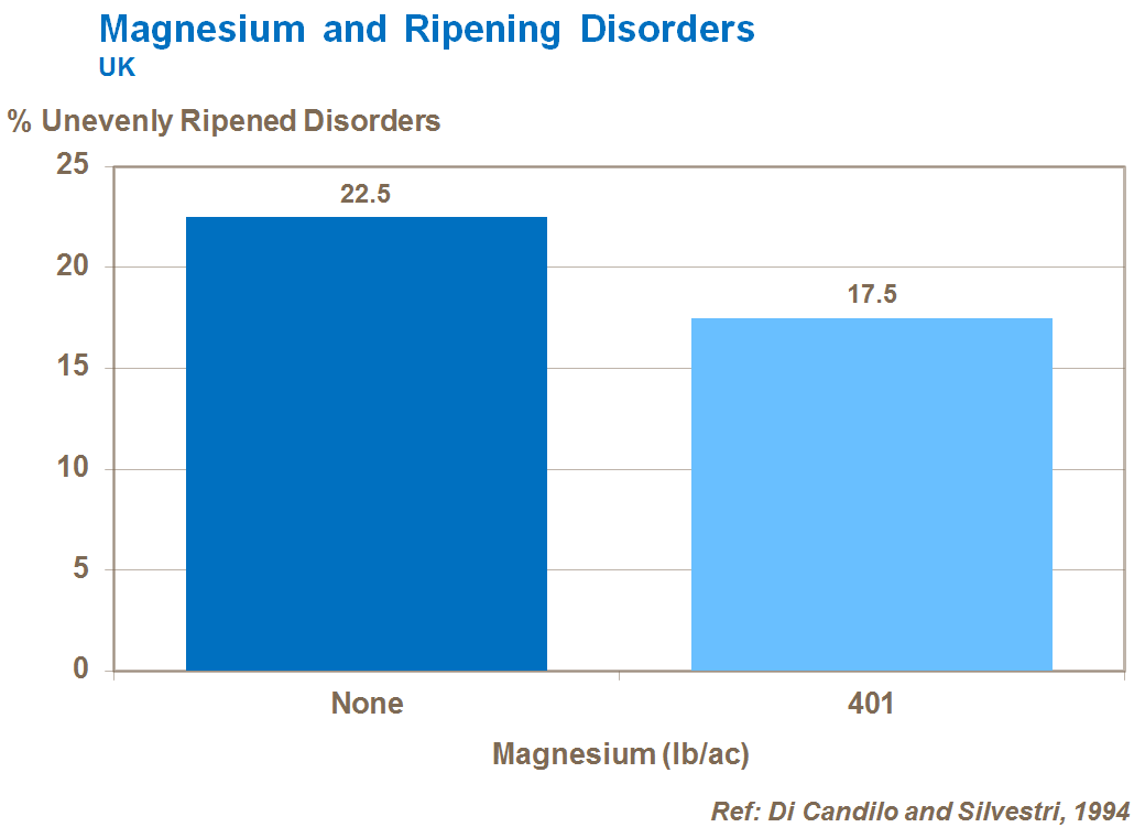 Magnesium is particularly important in ensuring even ripening of well-formed fruit.