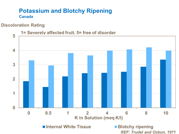 This is normally associated with inadequate potassium nutrition, though other causal factors are low light/high temperature and boron deficiency.