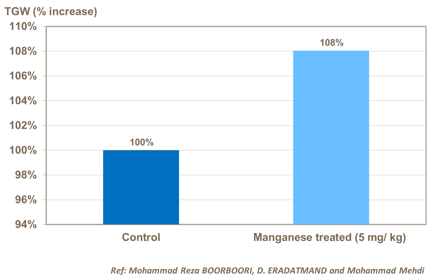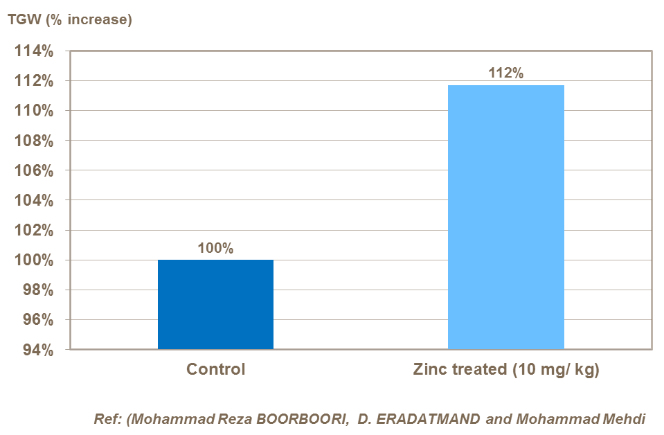 Des études ont démontré que les micronutriments de zinc, de cuivre, de manganèse et de bore ont tous augmenté le poids par mille grains (PMG) dans l’orge.